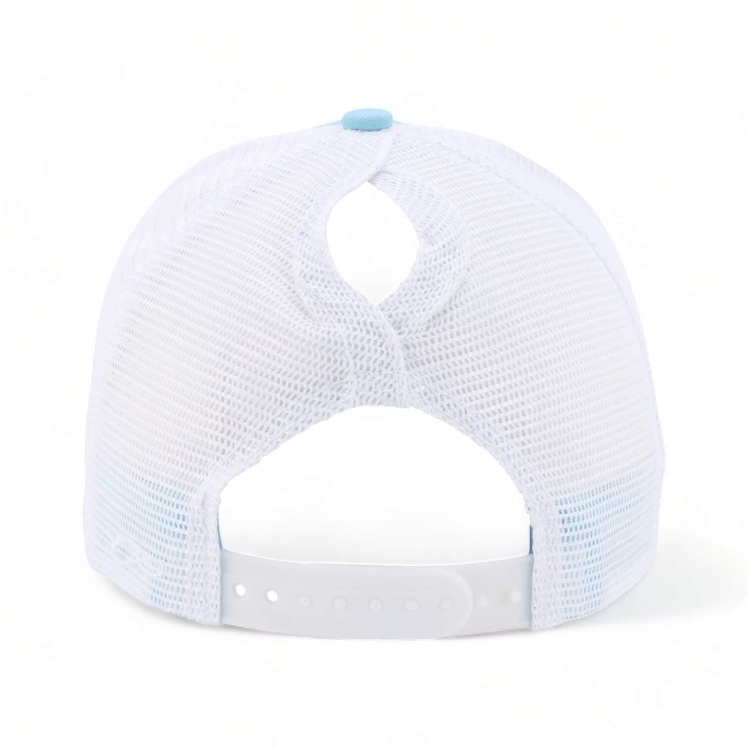 Then we have the makeup-resistant wicking sweatband. No smearing scares. And plenty of room for your ponytail to hang out from, with the snapback closure keeping it in place.